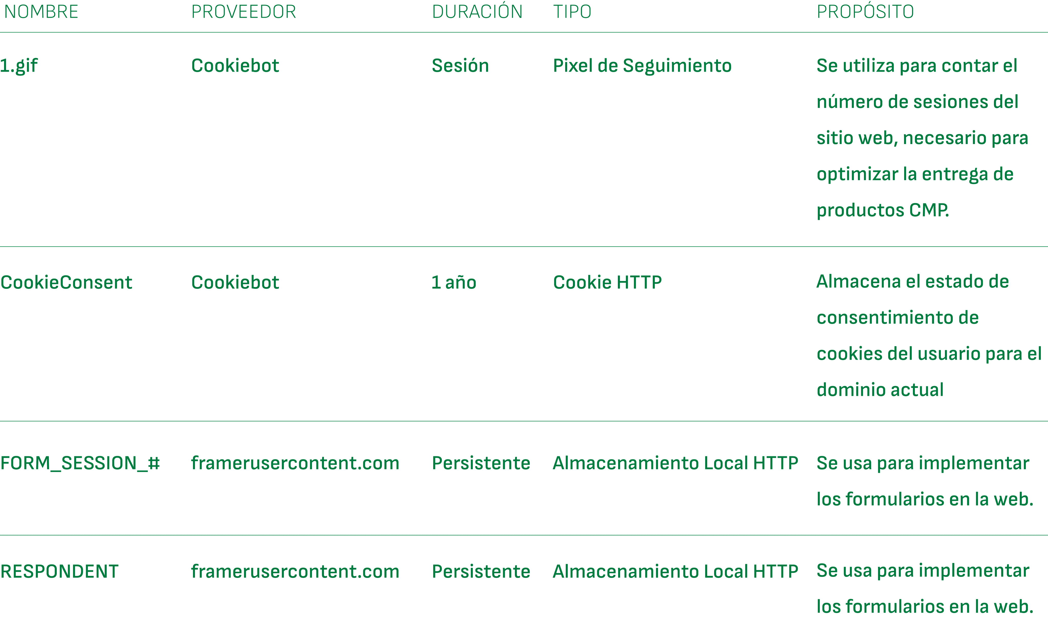 Puede negarse a aceptar nuestras cookies activando en la configuración del navegador el rechazo a las cookies. Le advertimos expresamente que si selecciona esta configuración, quizás no pueda acceder a determinadas zonas de nuestro sitio Web, o no pueda beneficiarse de alguno de nuestros productos y/o servicios. Esto no impedirá el posible almacenamiento o acceso de índole técnica mediante cookies específicas al solo fin de efectuar la transmisión de una comunicación por una red de comunicaciones electrónicas o, en la medida que resulte estrictamente necesario, para la prestación del servicio de expresamente solicitado y que son imprescindibles para garantizar la navegación en nuestro site y el uso de los servicios ofrecidos en el mismo.